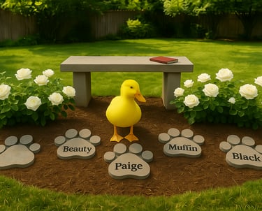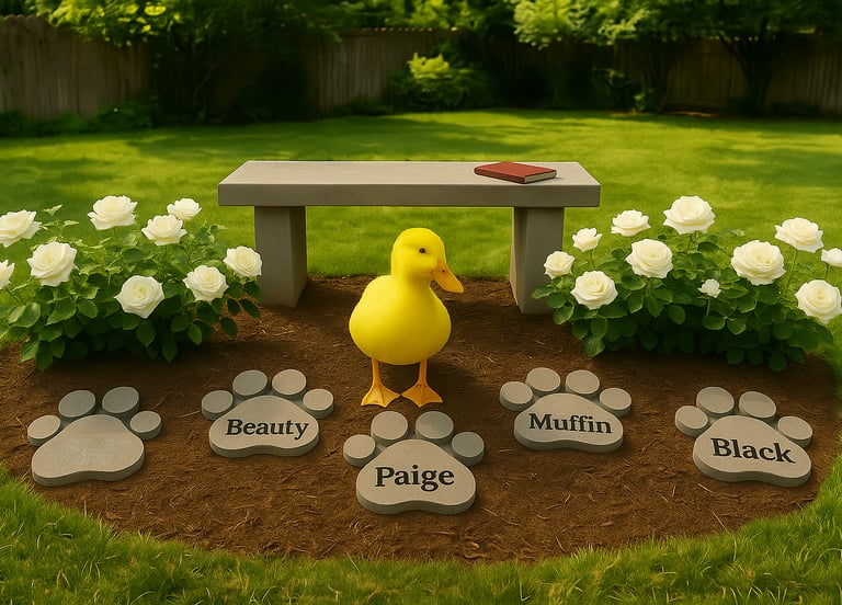 This is a sacred space you create in your own yard, a small section of peace and remembrance where love never leaves. Here, you place a simple memento from your pet, something you can lovingly part with, and let it rest among nature’s quiet comfort.